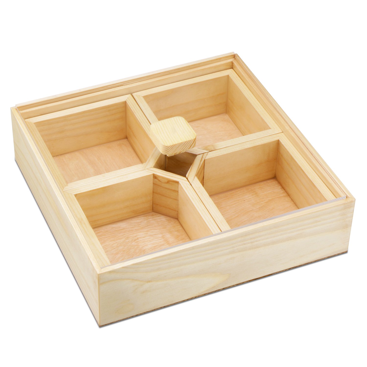 Package Includes: 1 Wooden Box with 4 Compartments & Glass Lid