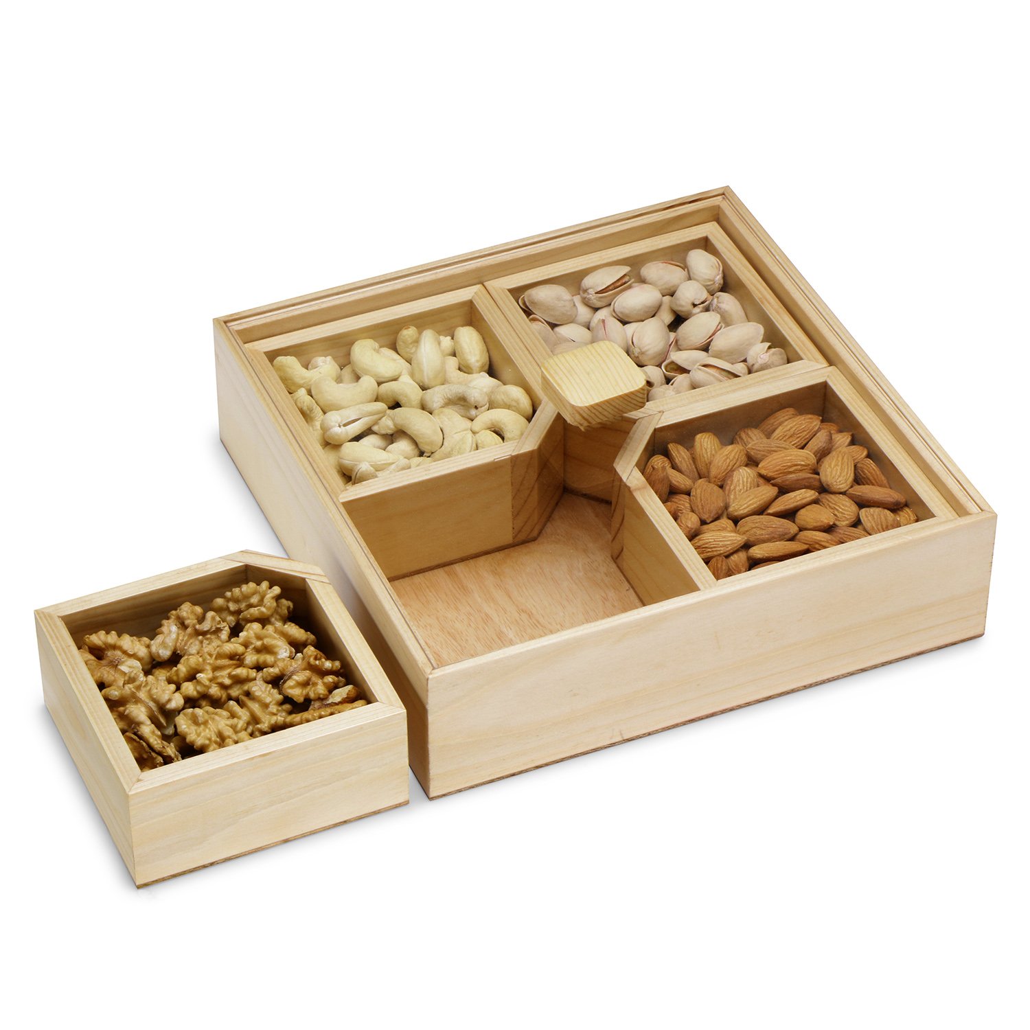 Whether used as a dry fruit box, snack organizer, or gift hamper box, this wooden compartment box adds a premium and decorative touch to any setting.